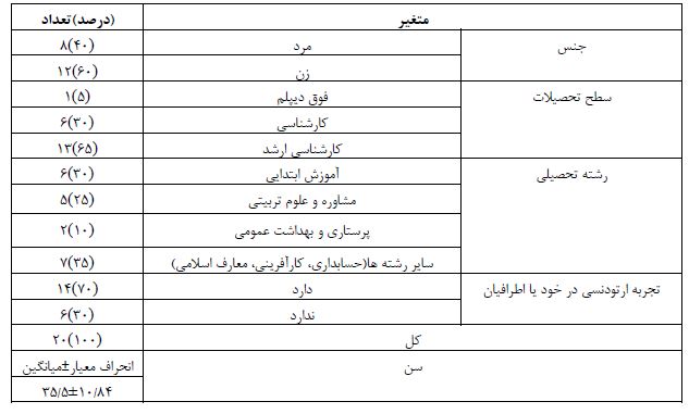 جدول1: (مشخصات دموگرافیک مشارکتکننندگان در پژوهش)