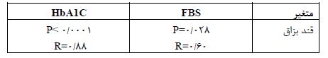 جدول 1:همبستگی بین میانگین قند خون و بزاق در بیماران دیابتی نوع 2