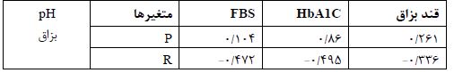 جدول2: ارتباط بین pH بزاق با قند خون و بزاق در بیماران دیابتی نوع 2