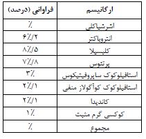 جدول 1: توزیع فراوانی ارگانیسمهای یافت شده در کشت ادرار کودکان مبتلا به عفونت ادراری بستری شده در بیمارستانهای تابعه دانشگاه علوم پزشکی آزاد اسلامی تهران در سالهای 1401-1400