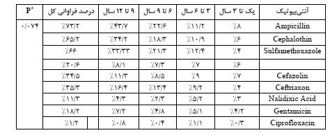 بر اساس نتایج جدول 5 که فراوانی مقاومت آنتیبیوتیکی یافت شده در کشت ادرار کودکان بستری شده در بیمارستانهای تابعه دانشگاه علوم پزشکی آزاد اسلامی تهران بر اساس سابقه عفونت را نشان میدهد که تعداد 33 نفر مجدد مبتلا شده بودند که باتوجهبه مقدار p در گروه مقاومت آنتیبیوتیکی متفاوت با توجه سابقه ابتلا در صورت وجود سابقه عفونت مقاومت آنتیبیوتیکی افزایش مییابد.