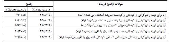 جدول3: وضعیت پاسخ دانشجویان دندانپزشکی یزد نسبت به حفاظت کودکان در برابر اشعه رادیوگرافی درسال 1402 به سوالات عملکرد