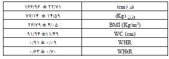 جدول1: ویژگی های توصیفی متغیرهای تنسنجی در زنان و مردان شاغل