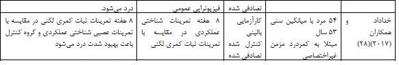 جدول 2: تاًثیر تمرینات کمری لگنی بر شدت درد افراد مبتلا به کمردرد مزمن غیراختصاصی