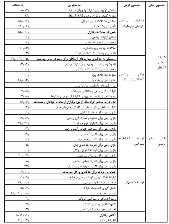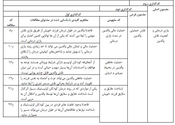 جدول 1: نمونه کدگذاری
