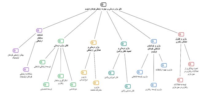 مضمون اصلی «نقش بازیدرمانی» به بررسی تأثیر بازیدرمانی بر بهبود مهارتهای ارتباطی، شناختی و رفتاری کودکان اوتیستیک میپردازد. بازیدرمانی به عنوان یک ابزار مؤثر در تسهیل فرآیند درمان و بهبود کیفیت زندگی این کودکان شناسایی شده است. این مضمون شامل چهار مضمون فرعی توسعه ارتباطی-شناختی، توسعه شخصیتی، شکلگیری ساختار رفتاری و خودشناسی است.
