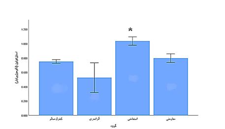 نمودار 1: سطح سرمی استیل کولین در گروههای مورد مطالعه. اختلاف میانگینها در سطح کمتر از 0/05 معنیدار است.